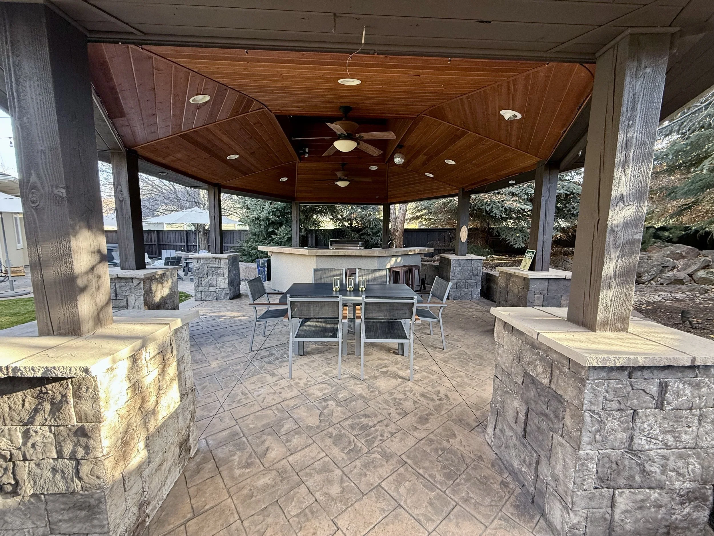 Backyard - Massive Heavy-timber Cabana with Full Kitchen and Waterfall Feature